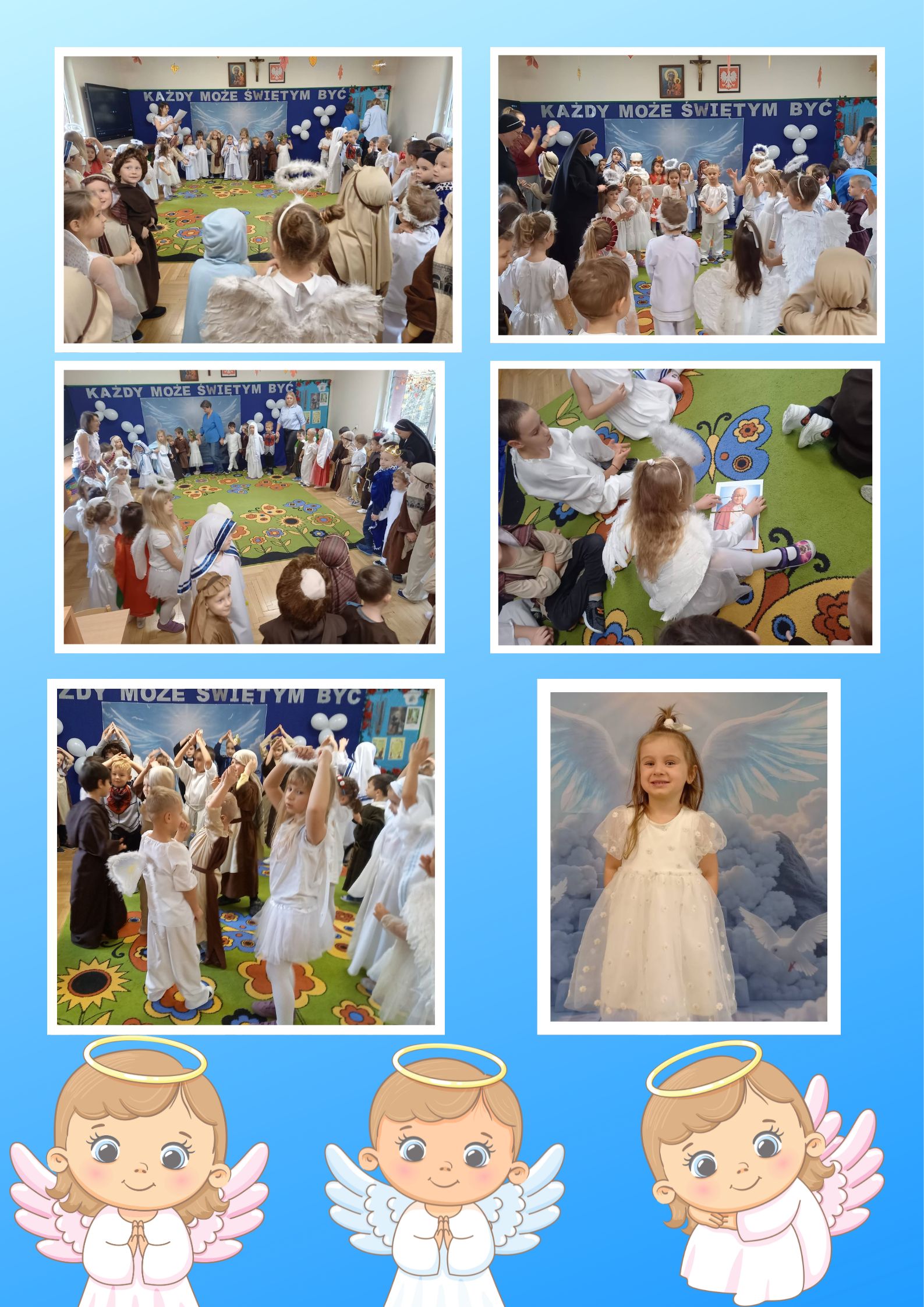 W naszym przedszkolu odbył się wyjątkowy Bal Wszystkich Świętych pod hasłem „Każdy może świętym być!”. Tego dnia w salach zrobiło się niezwykle kolorowo i radośnie, dzieci przebrane za Świętych, Błogosławionych oraz aniołów wypełniły przedszkole uśmiechem, śpiewem i tańcem. Podczas zabawy przedszkolaki przekonały się, że świętość to nie tylko piękny strój, ale przede wszystkim dobroć, miłość i pomoc drugiemu człowiekowi. Każdy z nas może być świętym – wystarczy codziennie czynić dobro, dzielić się radością i być dla innych życzliwym. Nie zabrakło wspólnych tańców, konkursów i śpiewu. Dzieci z dumą prezentowały swoje stroje, a atmosfera pełna była ciepła i radości. To był naprawdę wyjątkowy dzień, który przypomniał nam, że świętość zaczyna się od małych gestów.